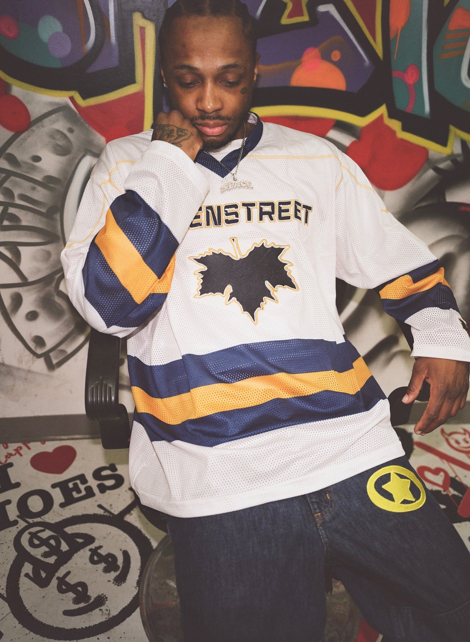 - BAGGY White / Navy / Yellow mesh hockey jersey